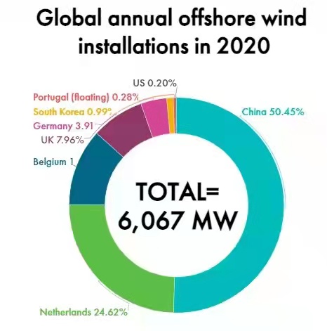 根据全球风能理事会(GWEC)的最新数据,尽管受到COVID-19大流行的影响,2020年全球新增海上风电6吉瓦,其中中国在海上海上风电装机容量方面连续第三年处于世界领先地位,全年新增超过3吉瓦,占全球总增量的一半。