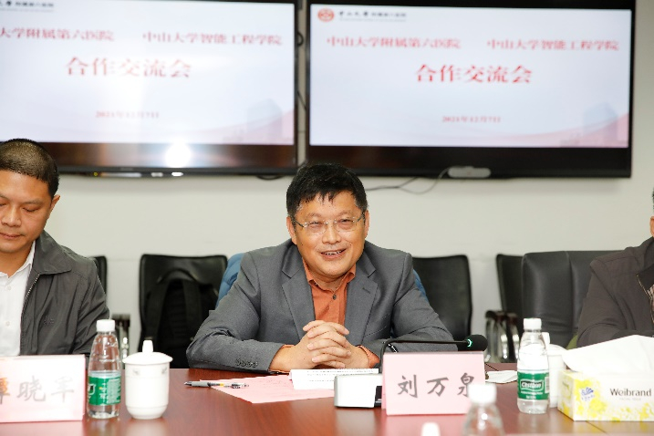 刘万泉院长发言表示:这是上任后第一次到学校附属医院落实实质性合作。“医工融合”是学院学科发展的新模式。智能制药、智能诊断、智慧手术、智慧养老,等等,都是学院发展的重要抓手。学院在智慧医疗领域的研究点,要针对医生们的诉求,面向人民生命健康的需求,进行技术攻关,实现应用突破。与附属六院签订战略合作意向书,就是要把前面零散的个别合作聚合在一起,重点突破一批技术应用项目,打造医工融合的新亮点。