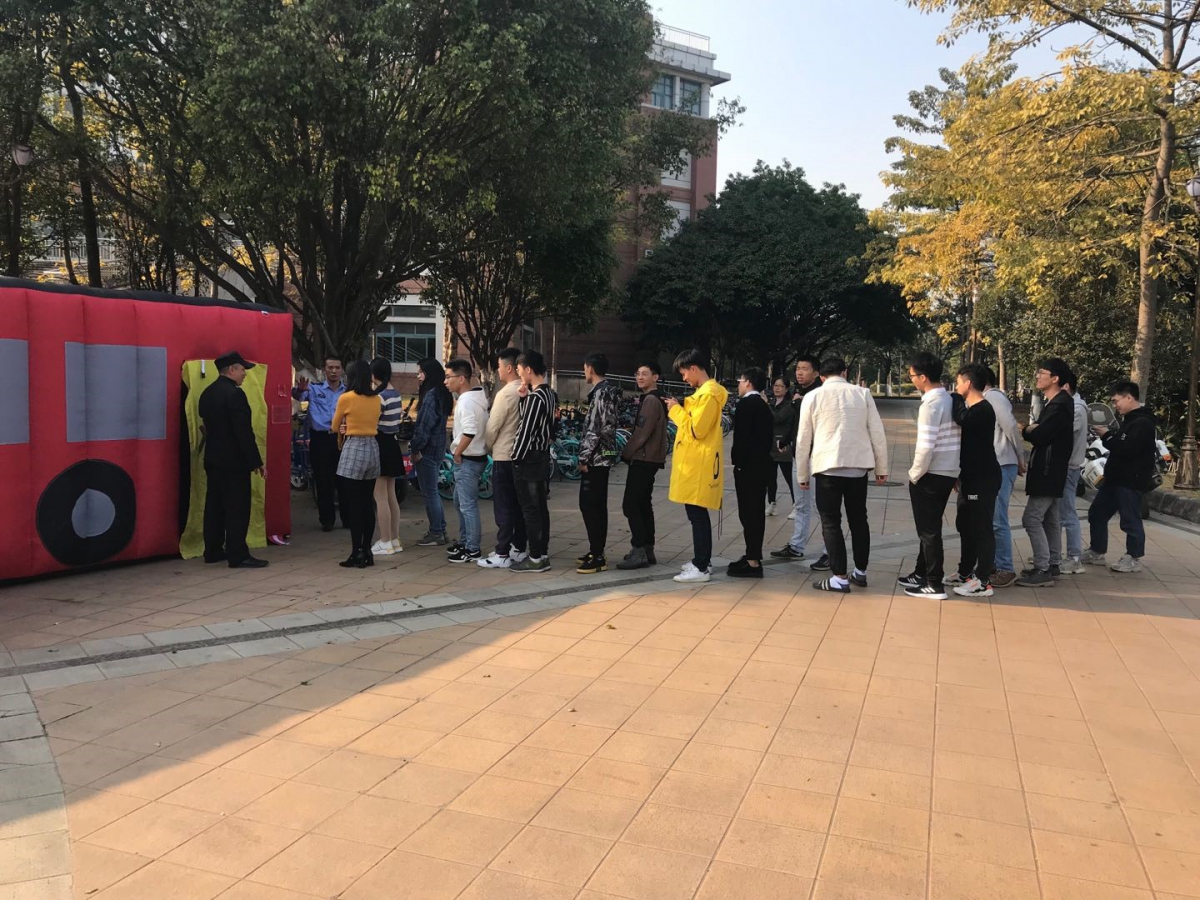 15:00-15:30,师生们在工学院楼前的罗马广场学习火场逃生技能。学员们通过火灾模拟逃生帐篷,亲身体验了在发生火灾时,如何逃离被浓烟和烈火围困的现场。工作人员为参与模拟逃生的学员们耐心地讲解“逃生”的注意事项和动作要领,每一名在场的师生都进行了体验。模拟结束后,演练工作人员对师生们的表现进行小结,指出学员们在“逃生”时存在不懂要领或速度慢的问题,希望大家牢记逃生要领,当真正的火灾发生时,能够以最快的速度逃生。通过本次模拟体验,师生们掌握了基本的火灾逃生技能。