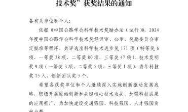 喜报:我院张荣辉副教授团队研究成果获得中国公路学会科技进步一等奖